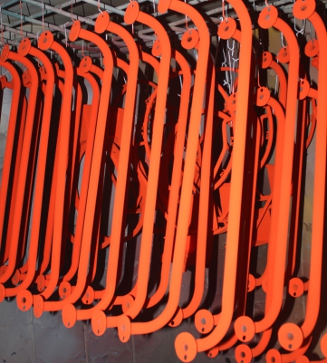 Las partículas de Pintura en Polvo que permanecen adheridas a la pieza por carga estática son inmediatamente curadas en un horno donde se transforman en un revestimiento continuo.